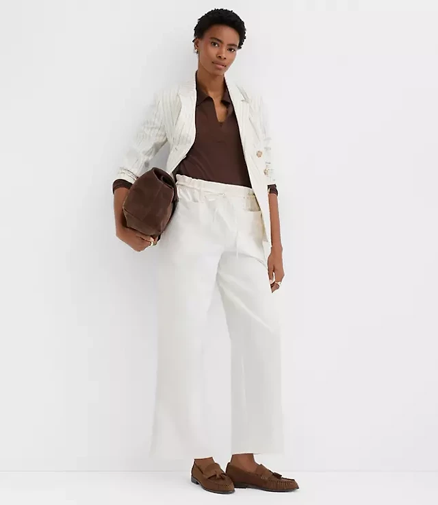 Lands' End Women's High Rise Drawstring Linen Wide Leg Crop Pants