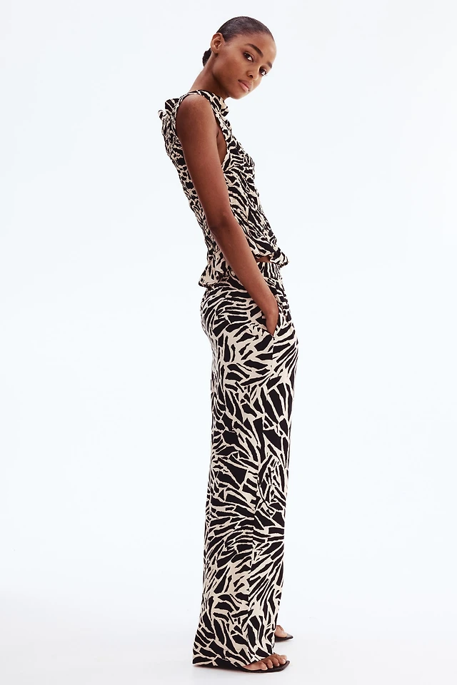 Pull-On Wide Leg Sharkskin High-Rise Retro Chic Nautical Pant