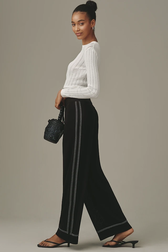 CUT-OUT STRIPED KNIT FLARE PANTS