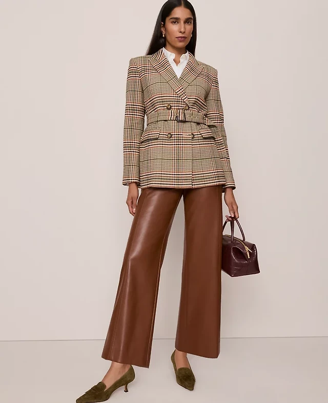 Ann Taylor The Grace Straight Pant Faux Leather Midnight Mahogany Women's