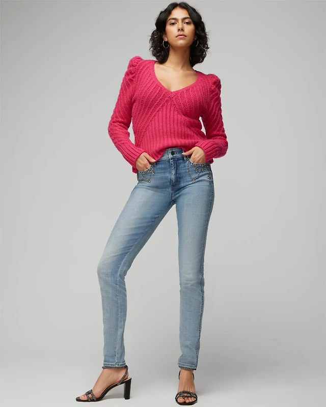 Studded Detail High-Rise Slim Cropped Jean