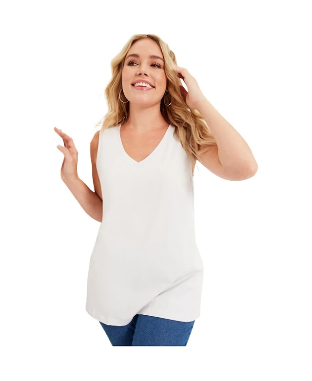 June + Vie Women's Plus V-Neck One Only Tank Top