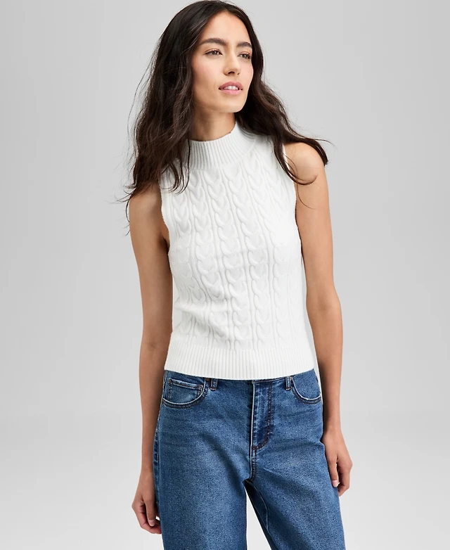 And Now This Women's Mock-Neck Cable-Knit Sweater Tank Top, Exclusively at Macy's