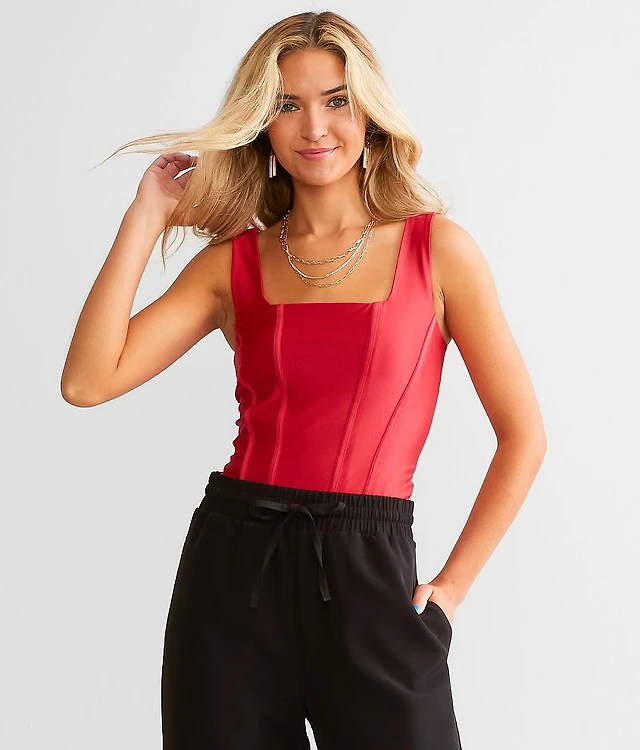 Ann Taylor Mixed Media V-Neck Tank Top Size 2XL Fiery Red Women's