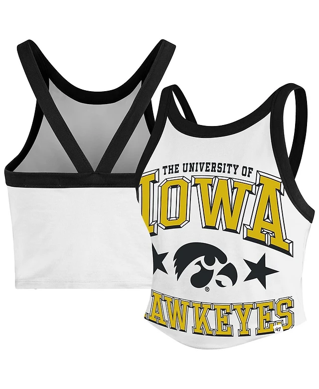 '47 Brand Women's White Iowa Hawkeyes Energize Sporty Cropped Racerback Tank Top
