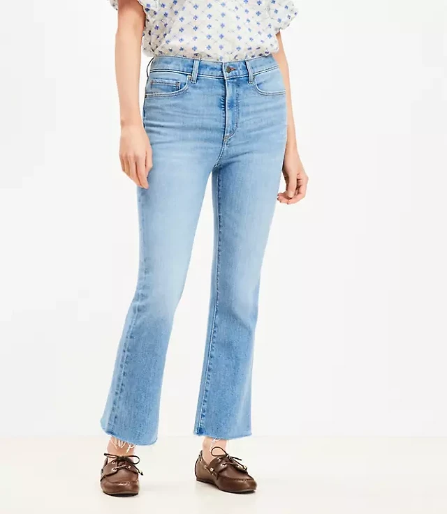 Curvy Let Down Hem High Rise Kick Crop Jeans Vivid Light Indigo Wash