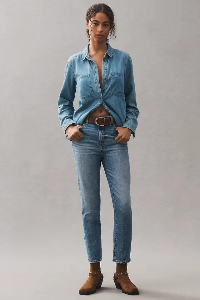 High Waisted Medium Wash FlexX Straight Ankle Jeans