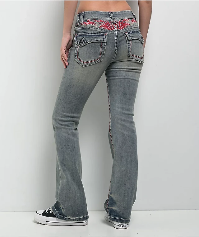 Madden Girl Juniors' Rhinestone Embellished Mid Rise Bootcut Jeans