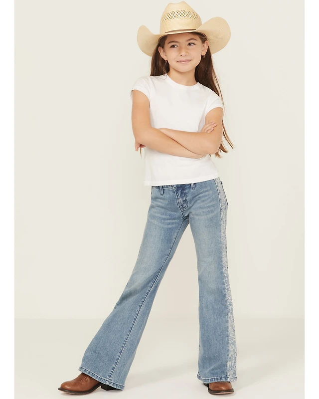Rock & Roll Denim Girls' Southwestern Print Panel Button Flare Stretch Jeans