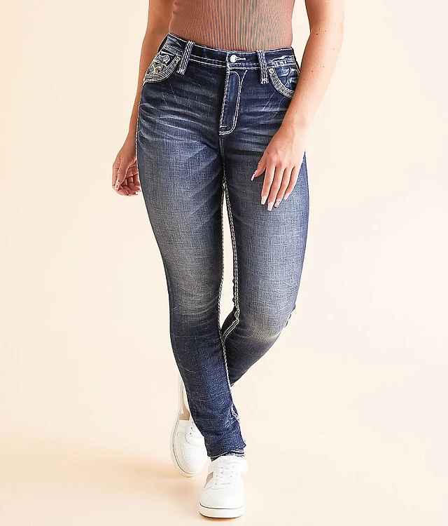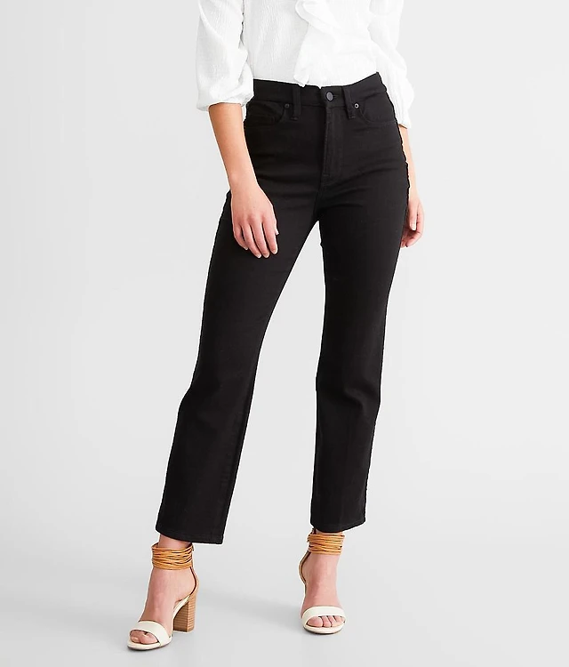 Flying Monkey Women's High Rise Slim Raw Hem Straight Jeans