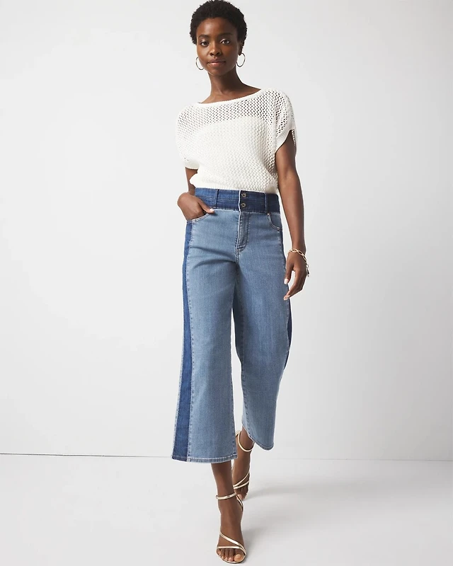 Extra High-Rise Colorblocked Wide Leg Cropped Jean