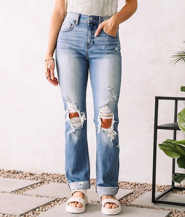 Flying Monkey Women's Katie Light Wash Super High Rise Barrel Stretch Denim Jeans