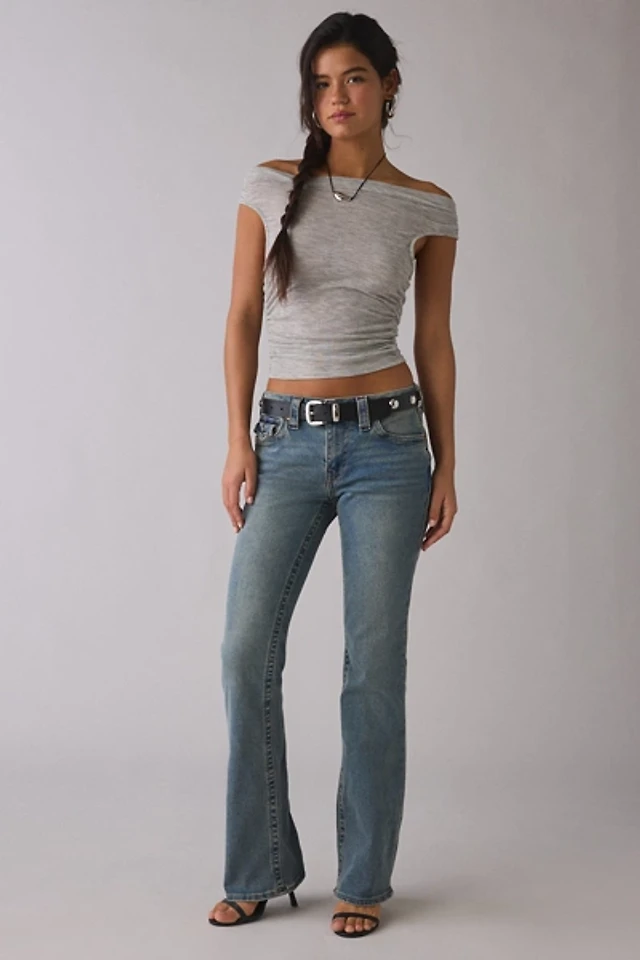 Kurvy Mid-Rise Split Flare Stretch Jean