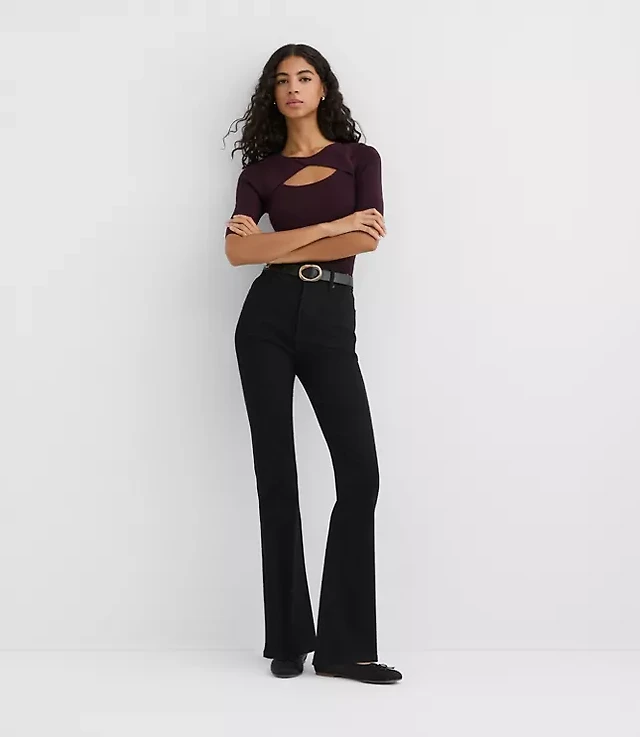 Dkny Jeans Petite Mock Neck Cropped Sweater Dkny Jeans High Rise Flare Leg Pull On Denim Jeans