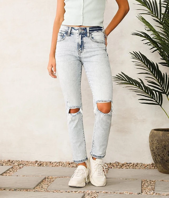 High Waisted Light Wash Ripped FlexX '70s Flare Jeans