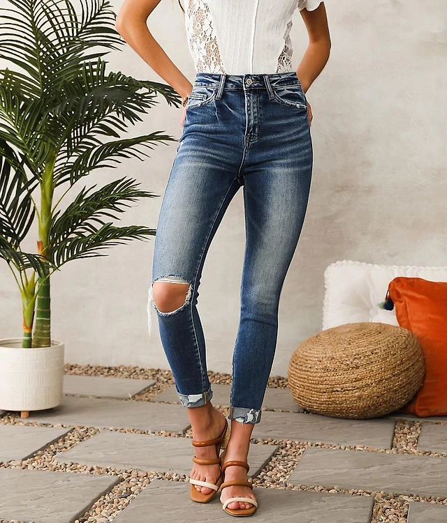 Mid Rise Medium Wash Distressed Skyscraper Jeans