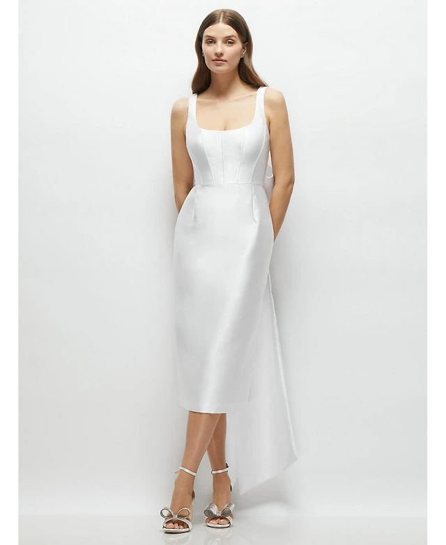 ASYMMETRIC CUT OUT LINEN MIDI DRESS
