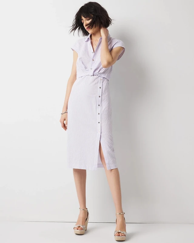 ASYMMETRIC CUT OUT LINEN MIDI DRESS