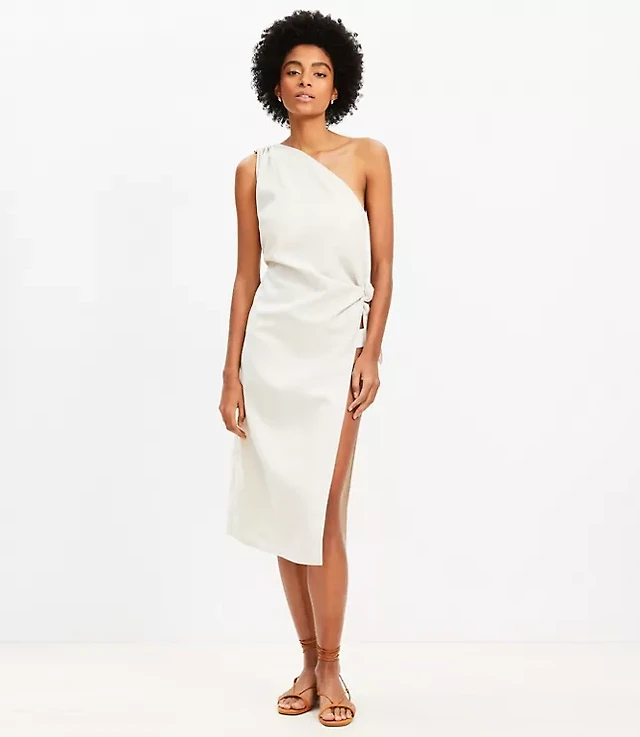 UO Josephine Jersey Knit Asymmetric Off-Shoulder Midi Dress