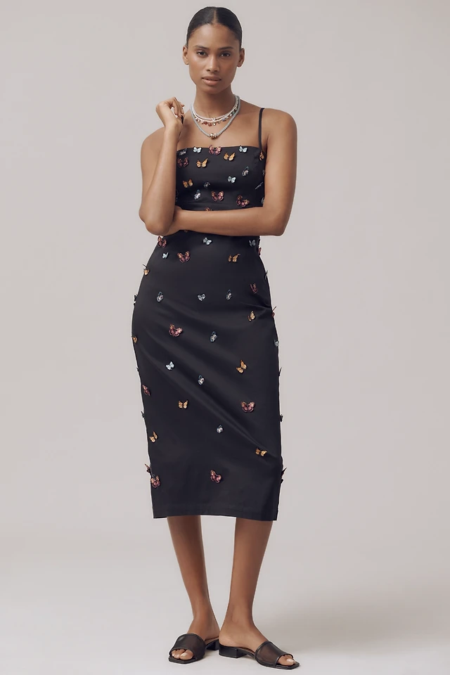 Kiss The Sky Ruffle-Trim Bell Sleeve Midi Dress