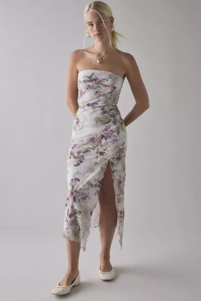 AFRM Marlo Ruched Mesh Strapless Maxi Dress