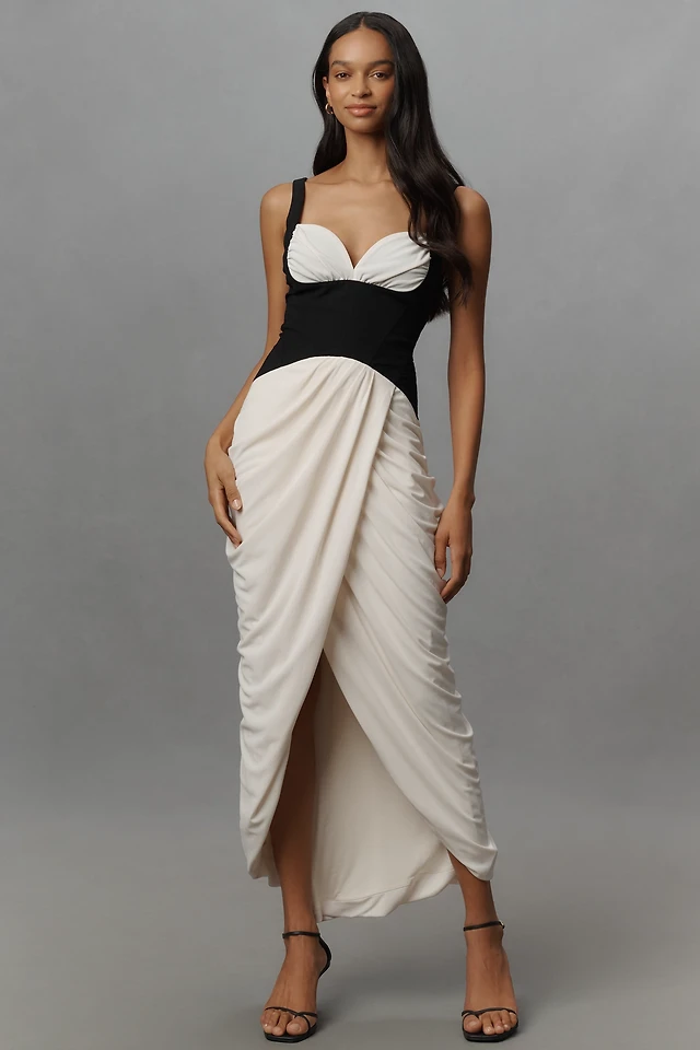 Avec Les Filles Women's Lace Up Corset Midi Dress