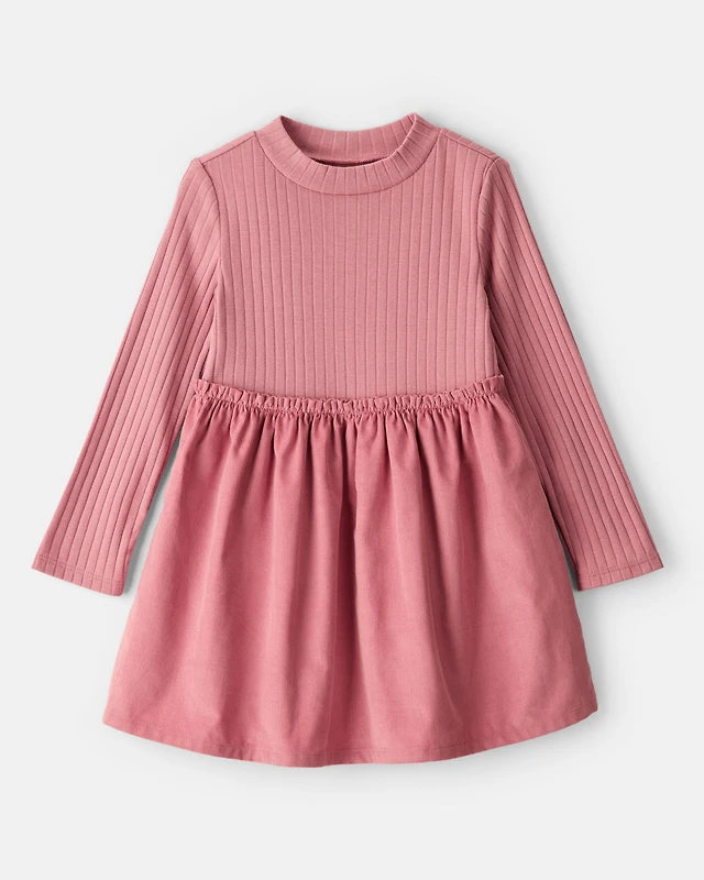 Girls Corduroy Dress Set - Pink/Ivory