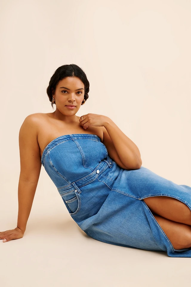 Modenaire Women's Strapless Tiered Ruffle High Slit Maxi Dress