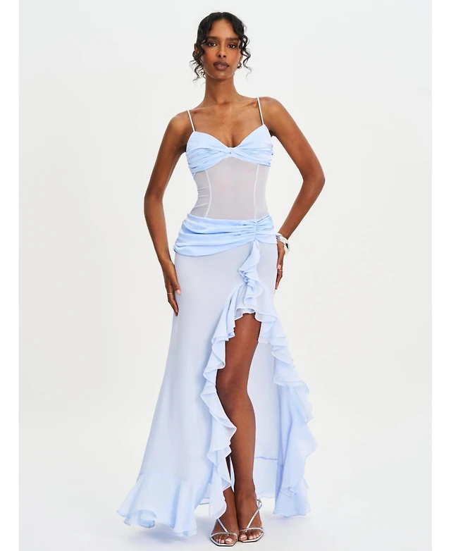 Miss Circle Women's Xatia Baby Blue Jacquard Textured High Slit Maxi Dress