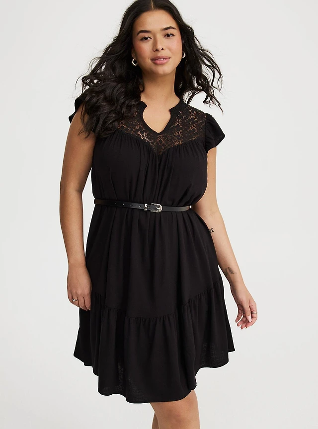 24seven Comfort Apparel Petite Ruffle Cap Sleeve Pleated Tiered Mini Dress