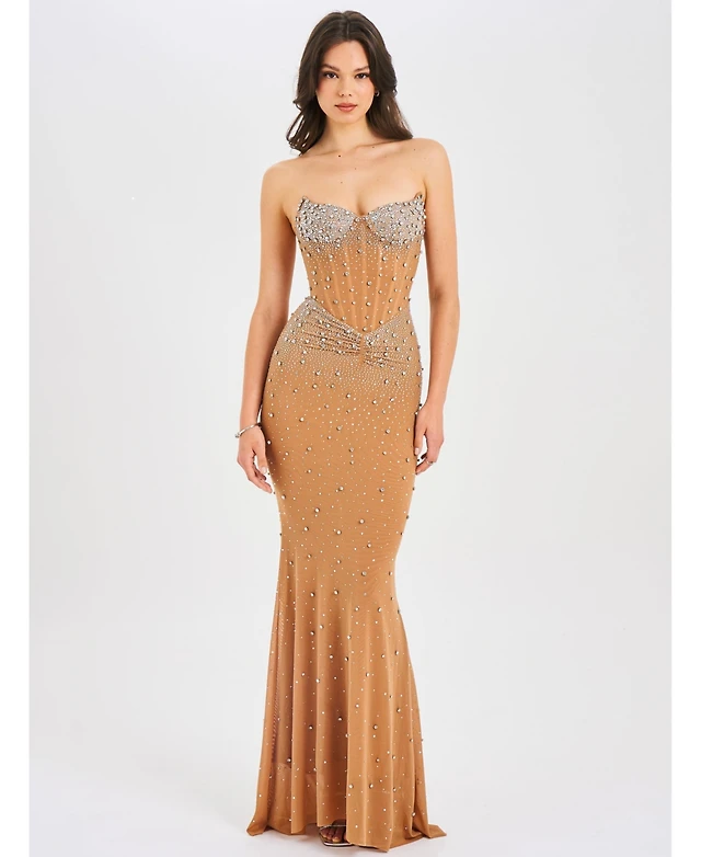 Miss Circle Women's Fatima Green Crystal Sleeveless Corset Mermaid Maxi Dress