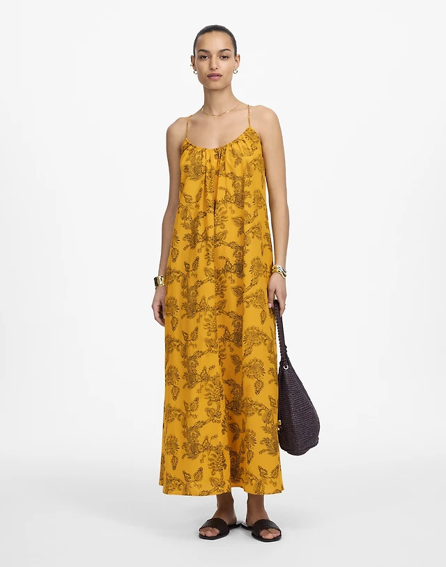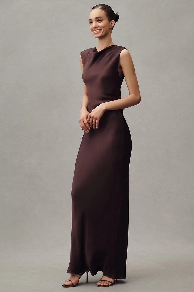 De La Vali Khamsin Halter Fringe Silk Satin Maxi Dress