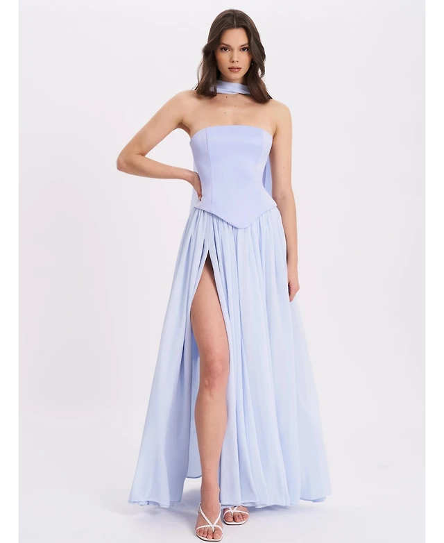 Miss Circle Women's Qianna Baby Blue Peplum Top Drop Waist Chiffon Gown