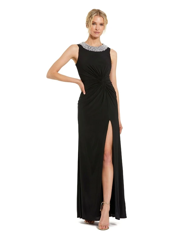 Mac Duggal Women's Sequined Halter Strap Low Side Knot Gown