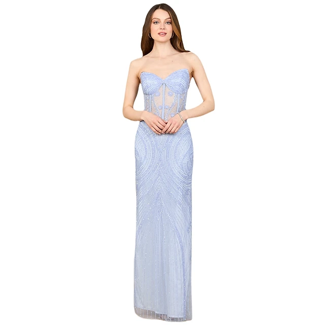 Blondie Nites Juniors' Strapless Side-Slit Satin Dress