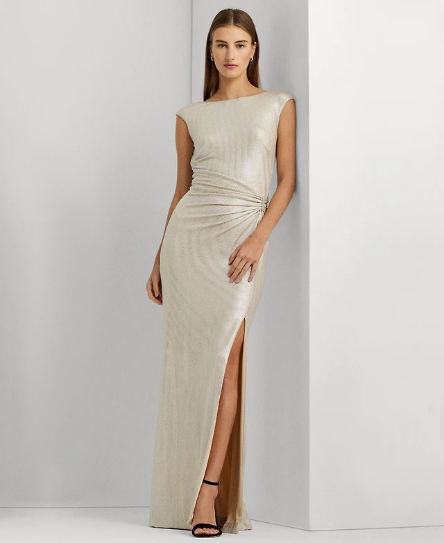 L'IDÉE Giselle High-Neck Sheer Shimmered Maxi Dress