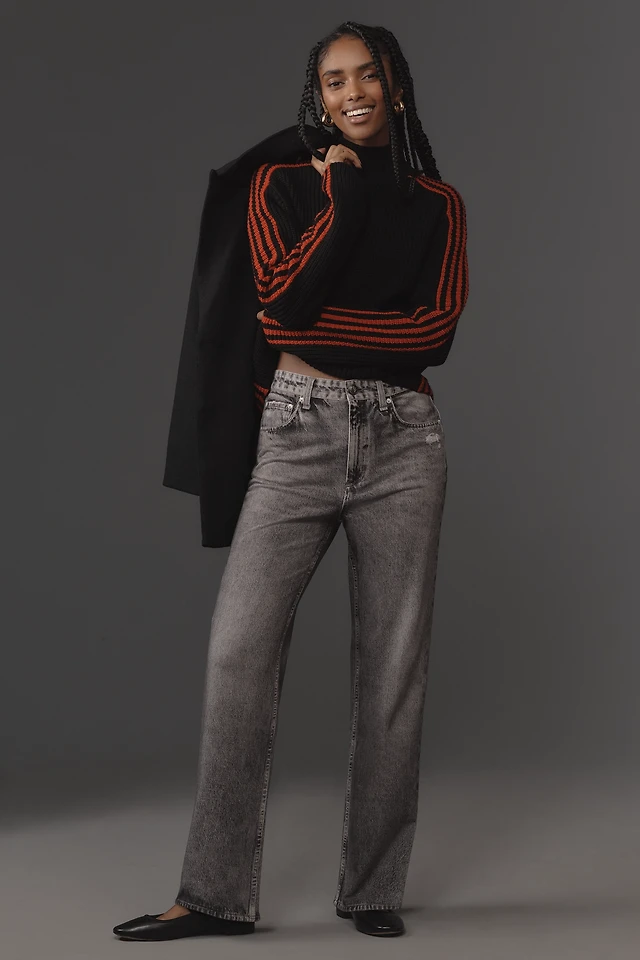rag & bone Miramar Shea High-Rise Relaxed Straight Denim-Knit Jeans