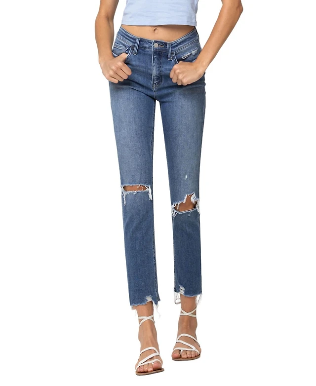 Flying Monkey Women's High Rise Cropped Step Hem Slim Straight Jeans
