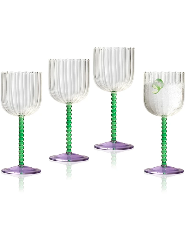 The Wine Savant Khen Pastel Muted Square Wine Glasses, Set of 4