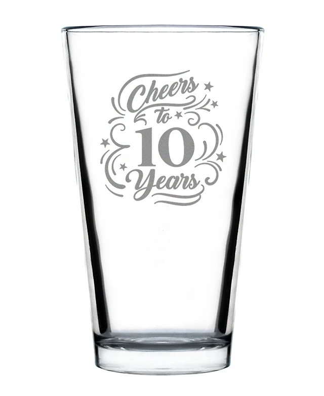 Bevvee Cheers to 10 Years 10th Anniversary Gifts Pint Glass, 16 oz