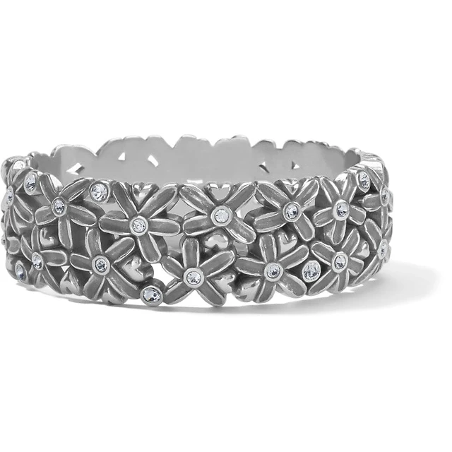 Guess Glass Stone Gold-Tone Floral Hinged Bangle Bracelet