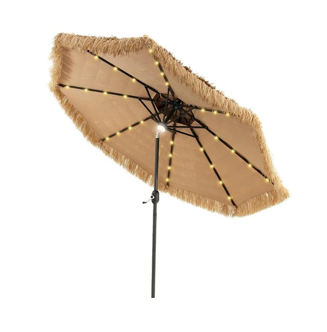 Givimo 9 Feet Solar Powered Thatched Tiki Patio Umbrella with Led Lights.
