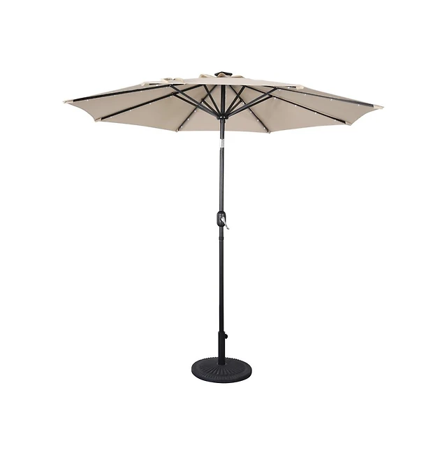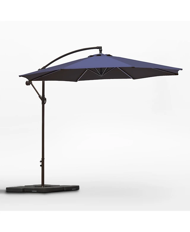Outdoor Steel Cantilever Offset Patio Umbrella with Solar Led Lights, Air Vent, Crank, and Base - 9'