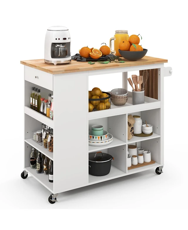 Volenca Kitchen Island Trolley Cart on Wheels with Storage Open Shelves and Drawer