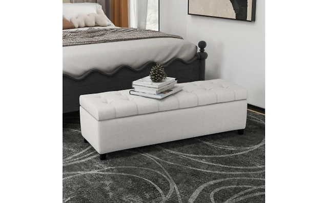Ornavo Home Foldable Tufted 43 Inch Long Linen Bench Storage Ottoman with Legs