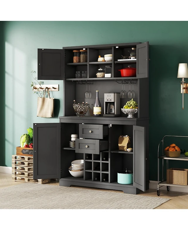 Casainc Wooden Kitchen Pantry Cabinet with Glass Doors and Storage Drawer