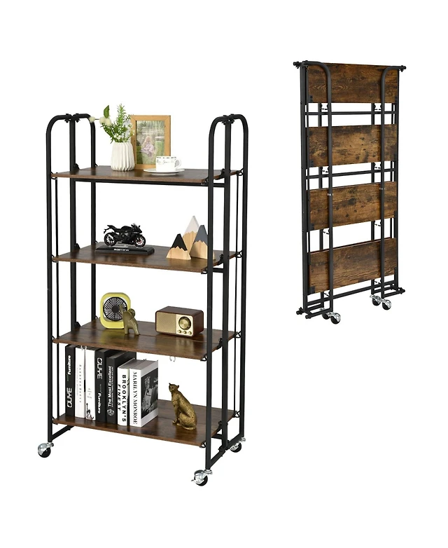 4-Tier Foldable Storage Shelf Collapsible Storage Rack with Lockable Wheels