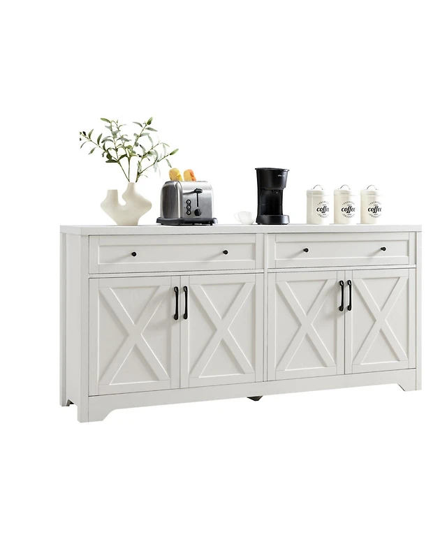 Tribesigns 59" White Gold Buffet Cabinet with Storage Kitchen Sideboard Storage Cabinet