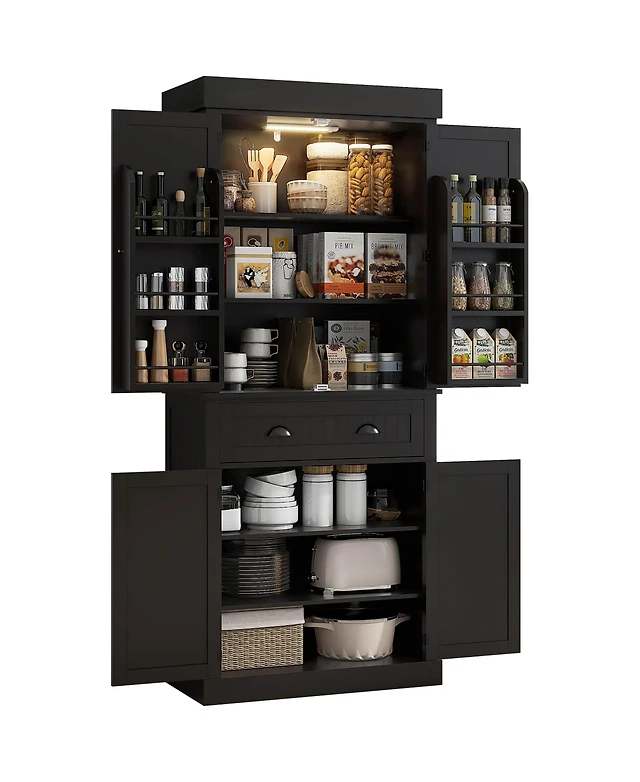 Ironck Kitchen Pantry Cabinet 72.8" H, 4 Barn Doors with Storage Rack, Brown