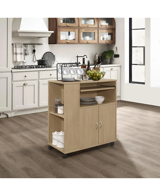 Slickblue Rolling Kitchen Island Cart with Storage Cabinet, Drawer, and Drop Leaf Table